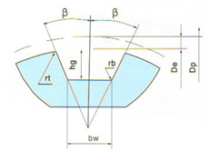 節距代號 bw hg β±1.5° rb rt 2k